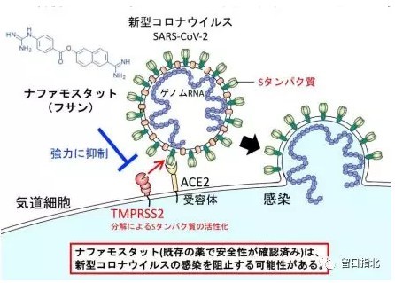 东京大学医学科学研究所亚洲传染病研究中心的井上淳一郎及其团队与3月18日下午对外公布公布,原用作治疗胰腺炎的药品萘莫司他(nafamostat)在浓度低至1-10 nM时能明显阻止新冠肺炎病毒侵入人体。