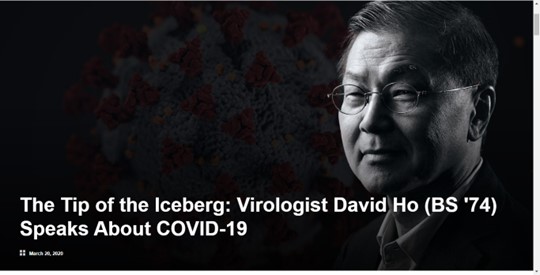 As of March 20, more than 8,700 people worldwide had died of COVID-19, the disease caused by the severe acute respiratory syndrome coronavirus 2 (SARS-CoV-2). Caltech trustee David Ho (BS ’74) of the Aaron Diamond AIDS Research Center, Columbia University, says that this is just the tip of the iceberg. Ho, an expert on viral epidemics, has spent decades researching HIV/AIDS, having begun his career in Los Angeles, “ground zero" of the first outbreak, in the early 1980s. On March 18, Ho sat down with members of the Caltech community to discuss the novel coronavirus and the future of our society in the light of this global pandemic.