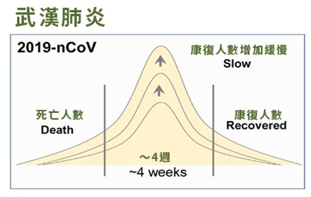 武漢肺炎的確診人數曲線是「向上移動」,龐大患病人口會拖垮醫療單位