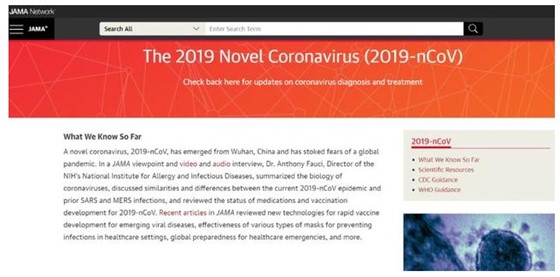 - JAMA 2019-nCoV的专题页:https://jamanetwork.com/journals/jama/pages/coronavirus-alert#scientific-resources