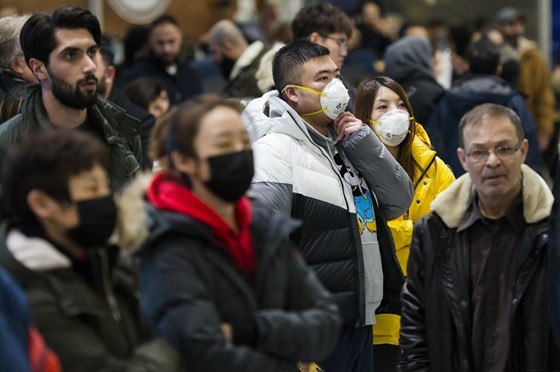 武漢肺炎疫情造成全球恐慌,加拿大多倫多機場許多人戴著口罩。(美聯社)