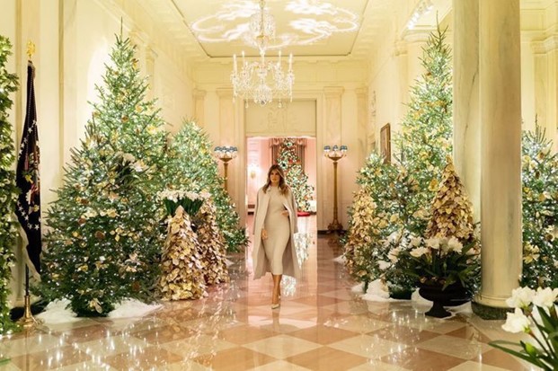 美國第一夫人梅蘭妮亞用一段影片帶著大家逛白宮,讓網友看看今年的聖誕布置,聖誕樹、彩色霓虹燈串、檞寄生、還有繁星掛飾,讓素雅的美國白宮搖身一變,更增添溫馨的氛圍。