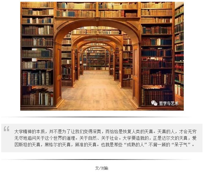 我相信,大学精神的本质,并不是为了让我们变得深奥,而恰恰是恢复人类的天真。天真的人,才会无穷无尽地追问关于这个世界的道理。关于自然、关于社会。
