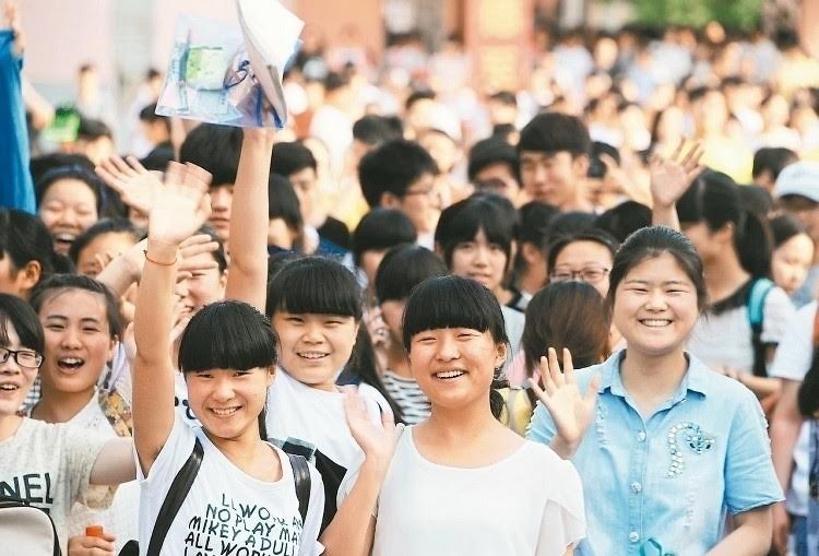 圖為日前大陸高中生參加大學高考,結束後走出考場。 法新社